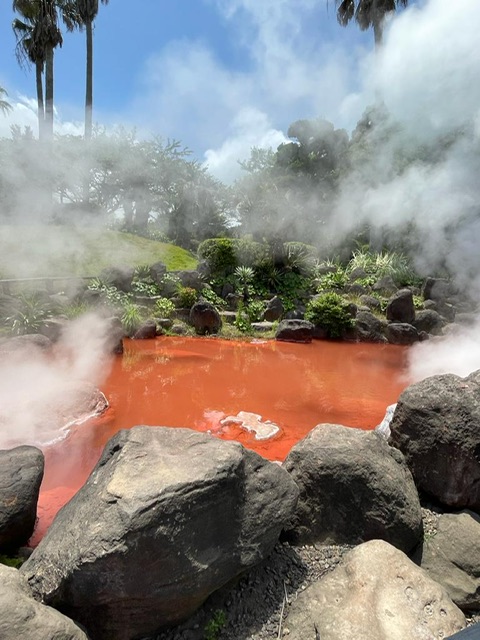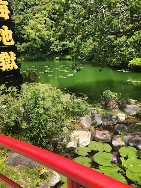 Was war es schön heute in Beppu! Beppu ist der größte Thermalbadeort im westlichen Japan. Überall dampft und raucht und es riecht nach Schwefel. Die Stadt selbst ist nicht besonders schön, aber die heißen Quellen sind faszinierend. Wir haben die Gelegenheit genutzt und einen Onsen besucht, Onsen heißt heißes Wasser und bezeichnet ein Thermalbad mit Innen- und Außenbecken, sie sind nach Geschlechtern getrennt und spielen in der japanischen Kultur eine große Rolle. Vor allen Dingen dienen sie den Menschen dazu, sich nach der Arbeit zu entspannen. Bei einem Besuch eines Onsen gibt es viele Sachen zu beachten. Vor allen Dingen muss man sich bevor man in das heiße Wasser geht, sehr sehr gründlich waschen. Man seift sich mehrmals ein und spült sich mit viel Wasser ab. Wir sind jetzt porentief rein und unsere Füße konnte sich vom vielen Laufen erholen.