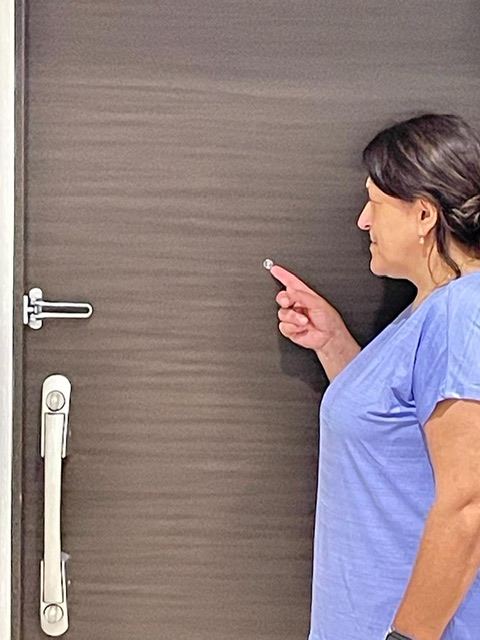 Den letzte Tag in Fukuoka haben wir erst mal genutzt, um herauszufinden, wo wir unser Gepäck lassen können. Wir wollen morgen früh nach Okinawa fliegen und natürlich nicht das ganze Gepäck mitnehmen. Nach einigem Hin und Her haben wir herausgefunden, dass man am Flughafen das Gepäck für mehrere Tage in ein Schließfach einschließen kann. Dann mussten wir noch Geld wechseln und nach einigem Suchen haben wir einen winzigen Automaten gefunden, eingequetscht in einer Ecke in dem riesigen Bahnhof von Fukuoka, aber er funktionierte und wechselte uns Euro in Yen. Dann wollten wir ans Meer fahren, das ist uns nicht wirklich gelungen, aber wir haben eine interessante Wohngegend besichtigt und sind schließlich, nachdem wir 250 Stufen überwunden haben, im botanischen Garten gelandet  Dort mussten wir uns vom vielen Laufen erholen und dann haben wir die wunderbaren Blumen bewundert. Vor allen Dingen den wunderschönen Rosengarten. Am Ende gab es ganz lecker Sushi und nun sind wir fast bettfertig und ganz gespannt, ob es morgen klappt, dass wir nach Okinawa kommen und eine Auszeit am Strand nehmen können. Aber bevor es ins Bett geht, höre ich mir das Eintrachtspiel an, ich hoffe, dass es mit dem Internet klappt und vor allem, dass die Eintracht gewinnt. PS: Türspion auf Augenhöhe 😀