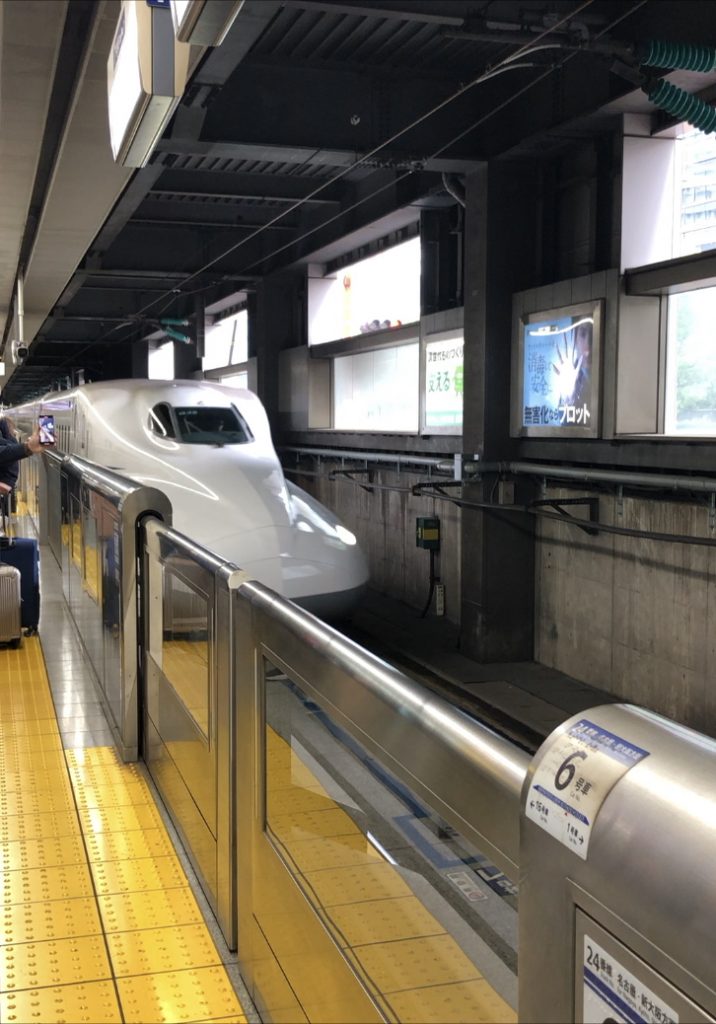Erster Fahrt mit dem Shinkansen Hikari vom Flughafen Narita nach Kyōto. Für die ca. 450km lange Strecke von Tokyo nach Kyōto braucht der Schnellzug nur 2,5h.